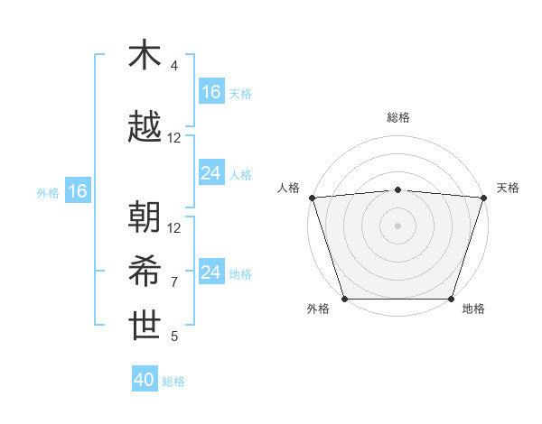 木越 朝希世さんを姓名の画数から五運を鑑定