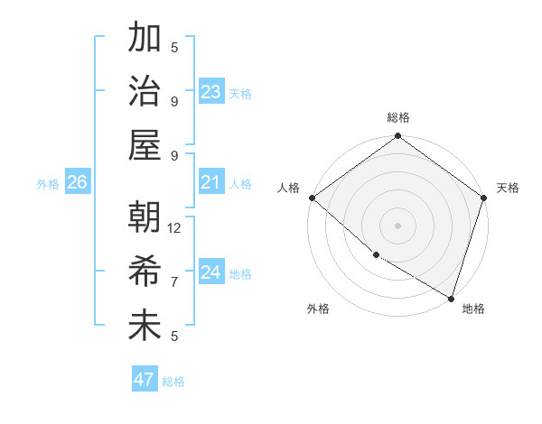 加治屋 朝希未さんの総格は47画の5点!