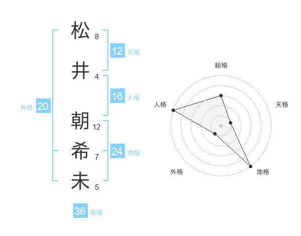 松井 朝希未さんの天格は12画の1点!