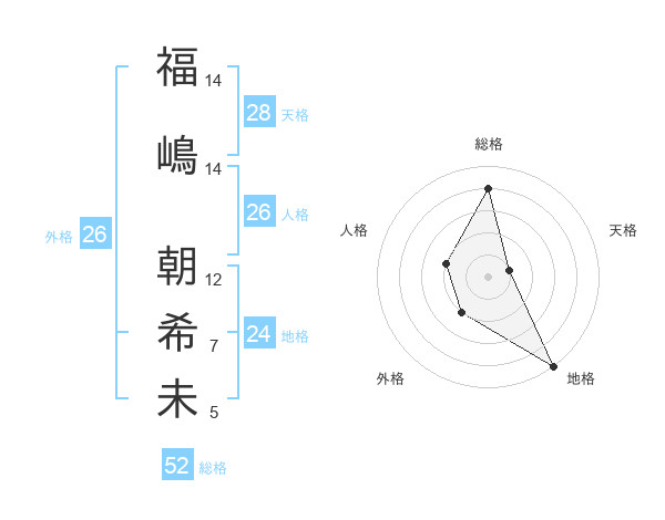 福嶋 朝希未さんの総格は52画の4点!
