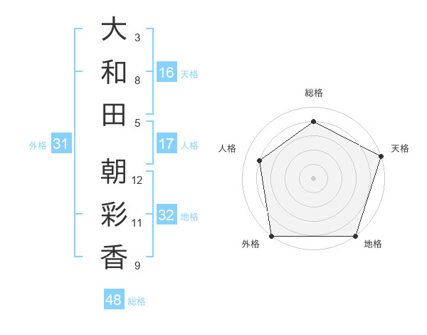 大和田 朝彩香さんの外格は31画の5点!