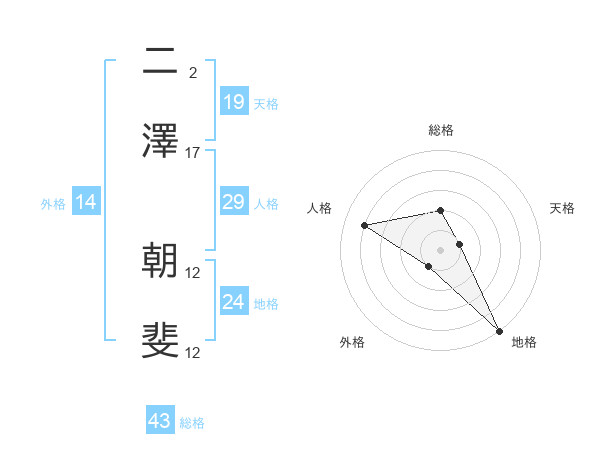 二澤 朝斐さんを姓名の画数から五運を鑑定