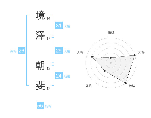 境澤 朝斐さんを姓名の画数から五運を鑑定