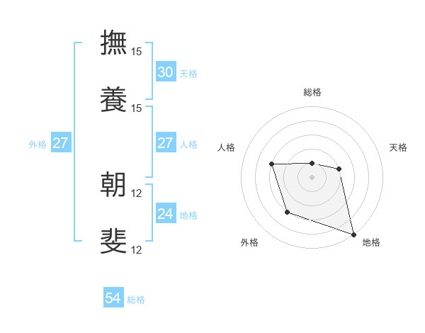 撫養 朝斐さんの天格は30画の2点!