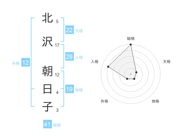 北沢 朝日子さんを姓名の画数から五運を鑑定