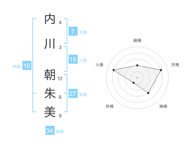 内川 朝朱美さんを姓名の画数から五運を鑑定