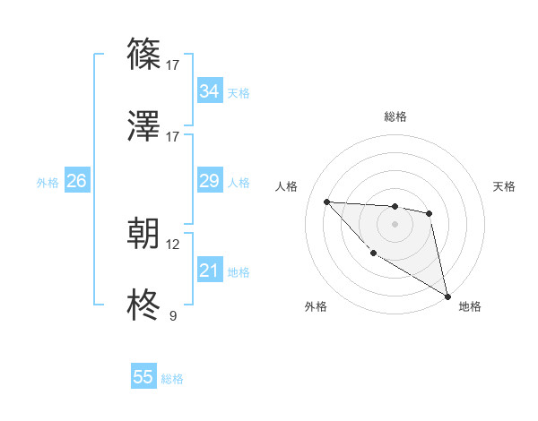 篠澤 朝柊さんの地格は21画の5点!