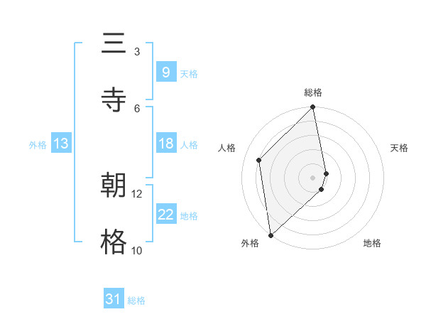 三寺 朝格さんを姓名の画数から五運を鑑定
