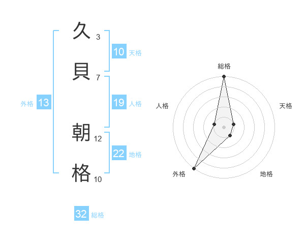 久貝 朝格さんを姓名の画数から五運を鑑定