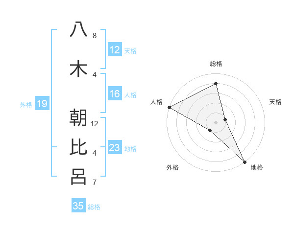 八木 朝比呂さんを姓名の画数から五運を鑑定