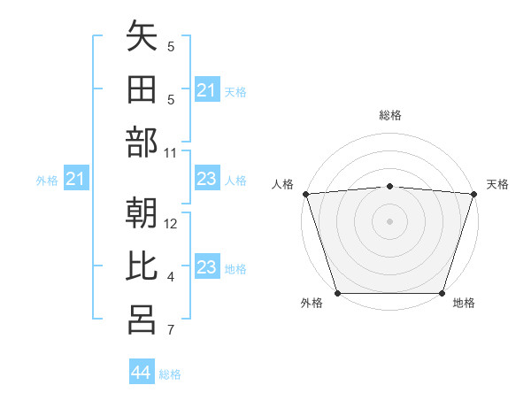 矢田部 朝比呂さんを姓名の画数から五運を鑑定