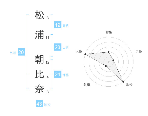 松浦 朝比奈さんを姓名の画数から五運を鑑定