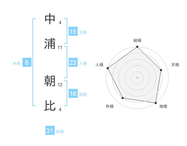 中浦 朝比さんを姓名の画数から五運を鑑定