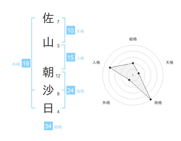 佐山 朝沙日さんを姓名の画数から五運を鑑定