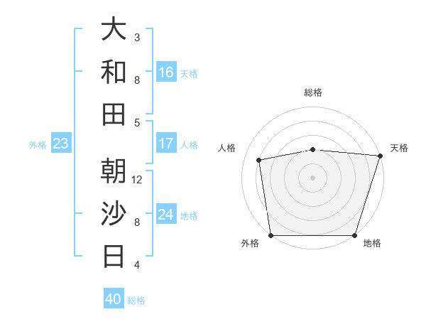 大和田 朝沙日さんを姓名の画数から五運を鑑定