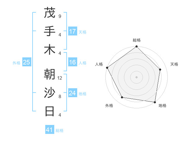 茂手木 朝沙日さんを姓名の画数から五運を鑑定