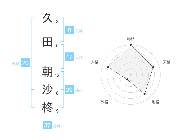 久田 朝沙柊さんを姓名の画数から五運を鑑定