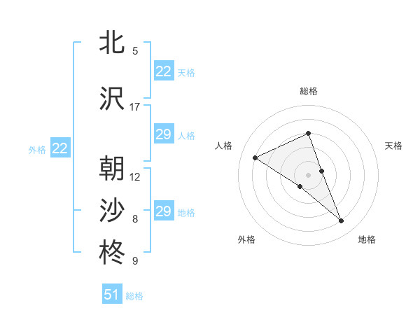 北沢 朝沙柊さんの総格は51画の3点!