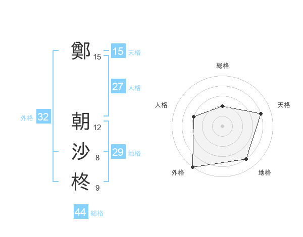 鄭 朝沙柊さんの天格は15画の4点!