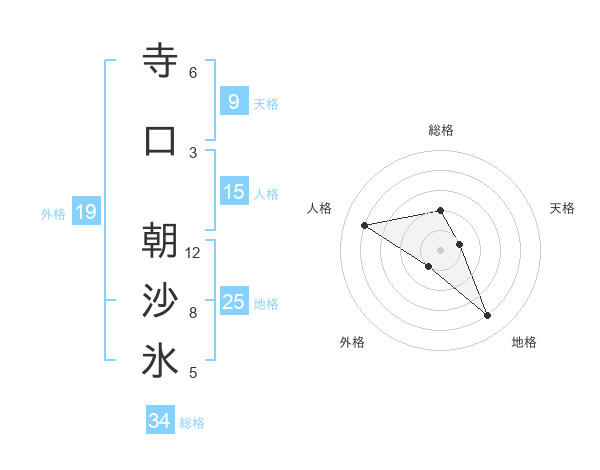 寺口 朝沙氷さんの総格は34画の2点!