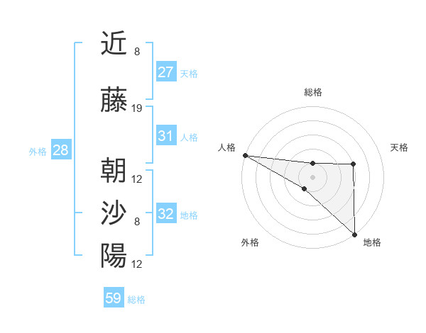 近藤 朝沙陽さんを姓名の画数から五運を鑑定