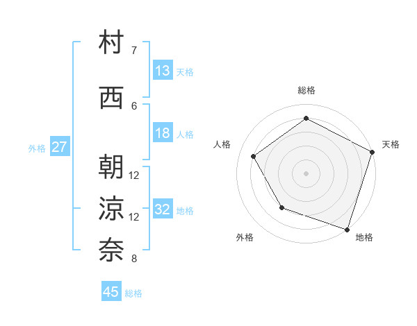 村西 朝涼奈さんの総格は45画の4点!