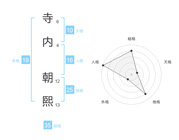 寺内 朝煕さんの外格は19画の1点!