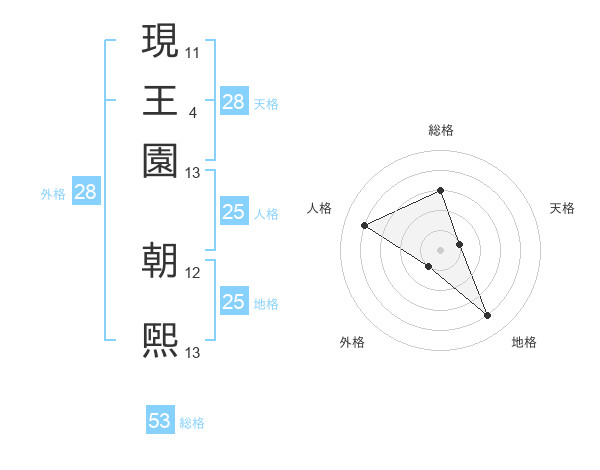 現王園 朝煕さんを姓名の画数から五運を鑑定