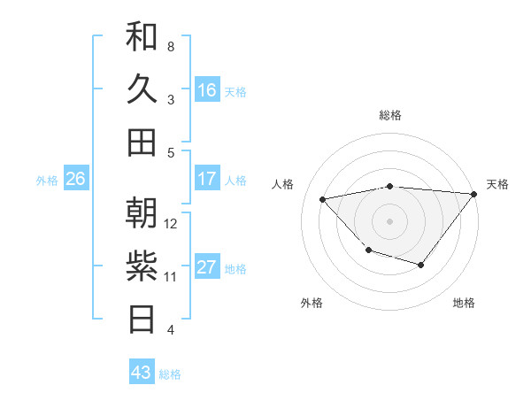 和久田 朝紫日さんを姓名の画数から五運を鑑定