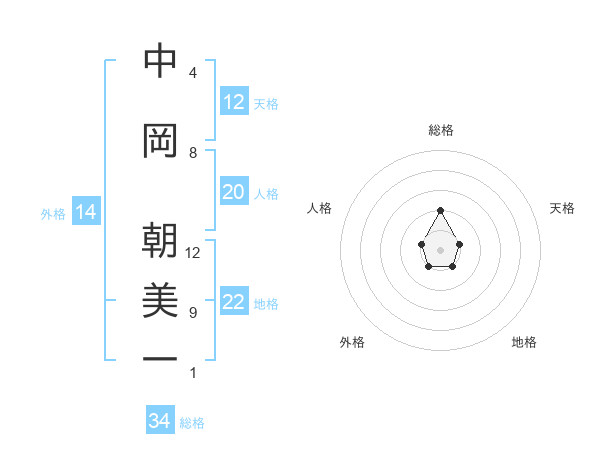 中岡 朝美一さんを姓名の画数から五運を鑑定
