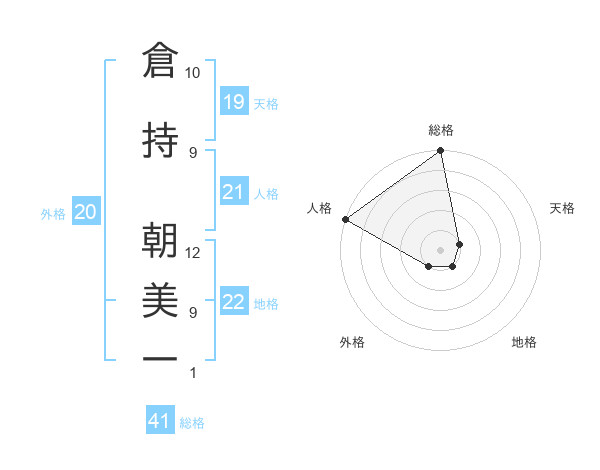 倉持 朝美一さんの総格は41画の5点