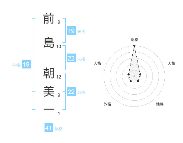 前島 朝美一さんを姓名の画数から五運を鑑定