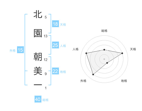 北園 朝美一さんを姓名の画数から五運を鑑定