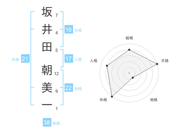坂井田 朝美一さんを姓名の画数から五運を鑑定