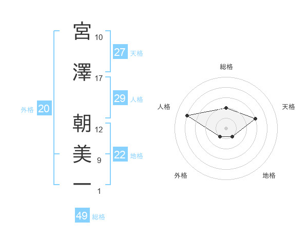 宮澤 朝美一さんを姓名の画数から五運を鑑定