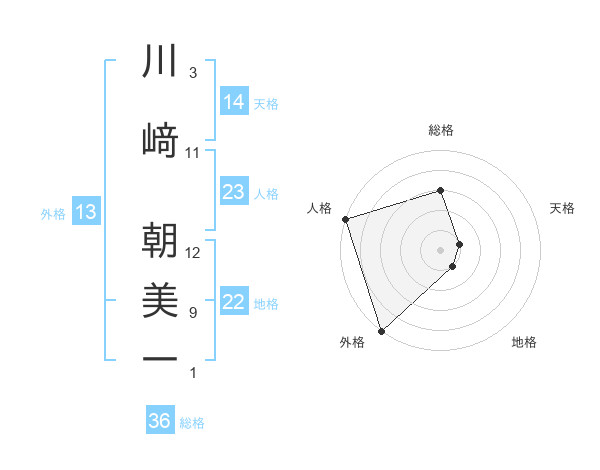 川﨑 朝美一さんを姓名の画数から五運を鑑定