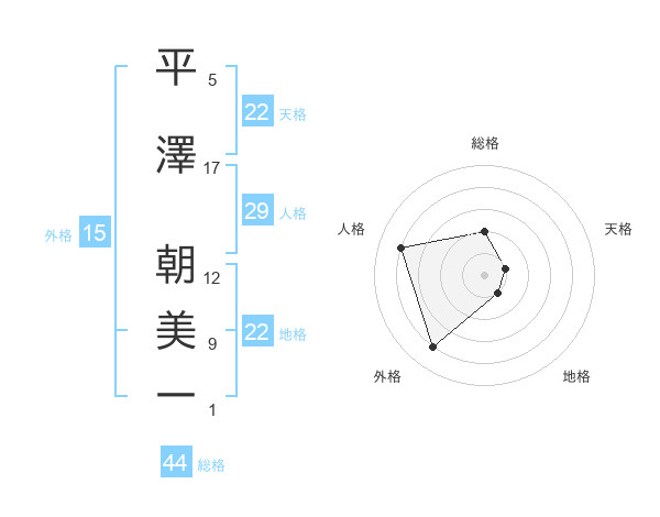 平澤 朝美一さんを姓名の画数から五運を鑑定