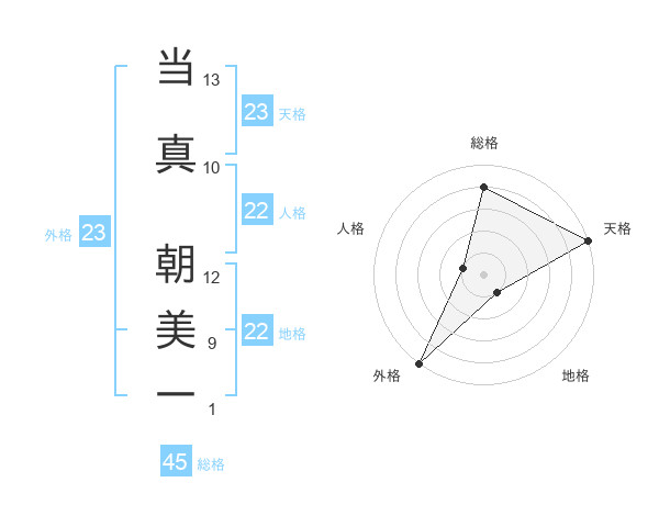 当真 朝美一さんを姓名の画数から五運を鑑定