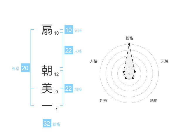 扇 朝美一さんを姓名の画数から五運を鑑定