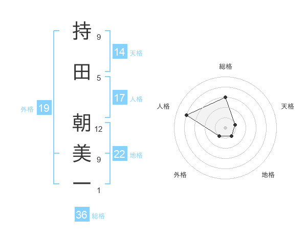 持田 朝美一さんを姓名の画数から五運を鑑定