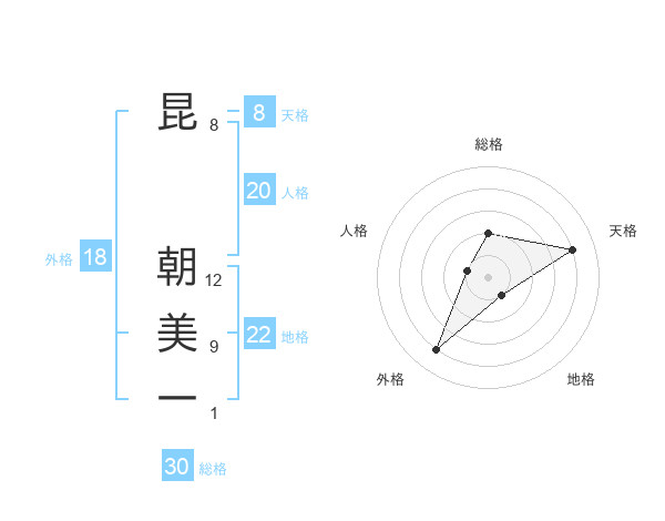 昆 朝美一さんの天格は8画の4点!