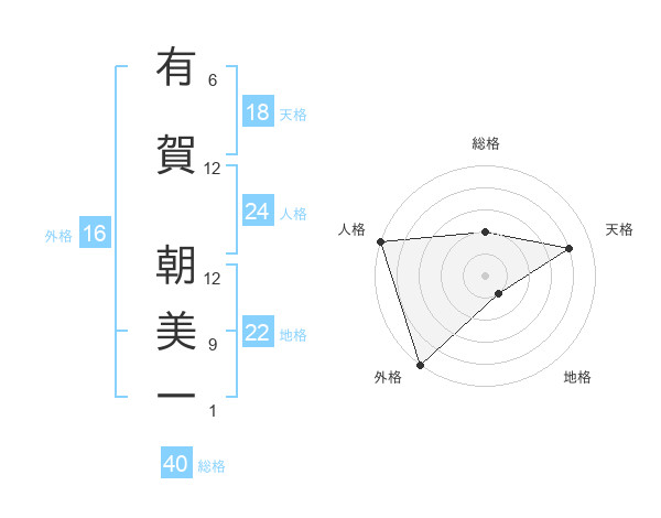 有賀 朝美一さんを姓名の画数から五運を鑑定
