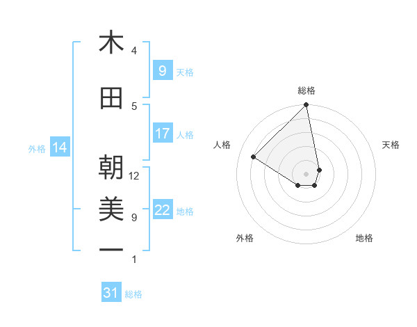 木田 朝美一さんの総格は31画の5点!