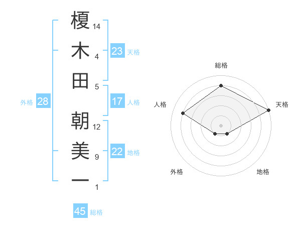 榎木田 朝美一さんの総格は45画の4点