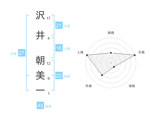 沢井 朝美一さんを姓名の画数から五運を鑑定