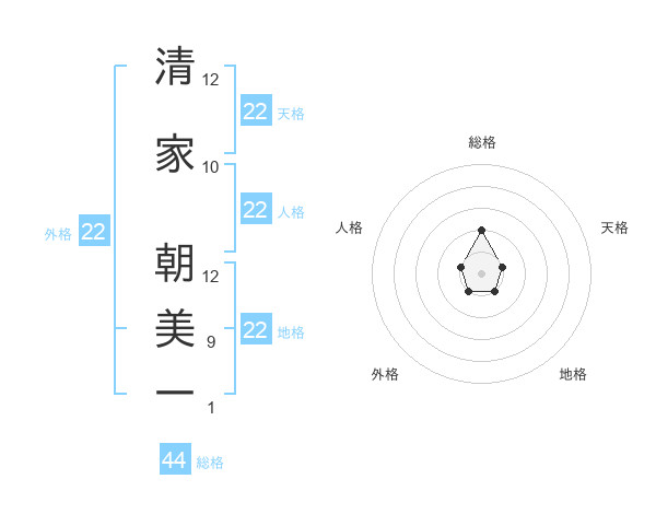 清家 朝美一さんを姓名の画数から五運を鑑定