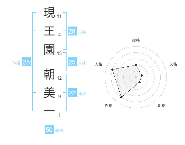 現王園 朝美一さんを姓名の画数から五運を鑑定