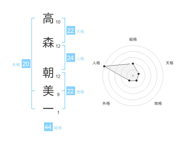 高森 朝美一さんを姓名の画数から五運を鑑定
