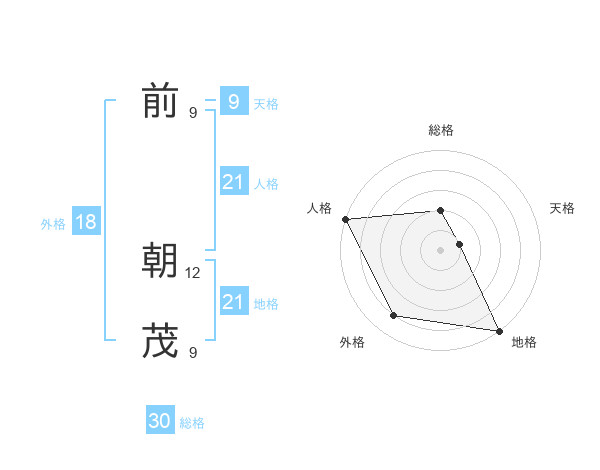 前 朝茂さんの総格は30画の2点!