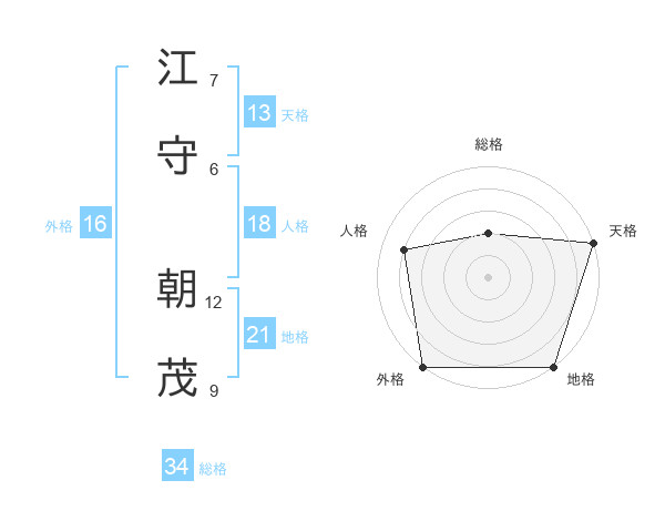江守 朝茂さんを姓名の画数から五運を鑑定